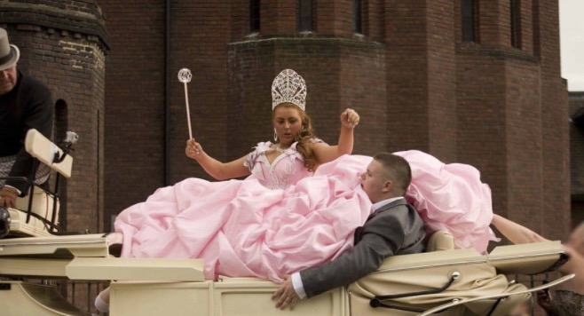 Oui, ce n’est pas une photo de Molly Ringwald. Mais vous voulez rester ici pour vraiment absorber cette robe de mariée. Est-ce un conte de fées? Oui. Est-ce rose ? Double oui. Est-ce choquant à la limite? Certainement. Nous ne doutons pas que cette mariée a été appelée princesse toute sa vie, il est donc tout à fait approprié que, le jour de son grand jour, elle ait été traitée et habillée comme la princesse qu’elle est ! Rendez-vous à la page suivante >>