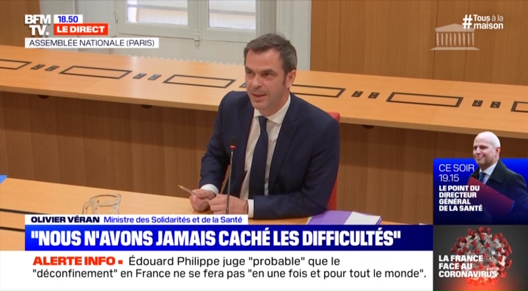 Lors d’une conférence de presse, le Premier ministre Edouard Philippe et le ministre de la Santé Olivier Véran reconnaissent enfin la nécessité de tester plus massivement. Il s’agit aussi de commencer à anticiper la sortie du confinement.